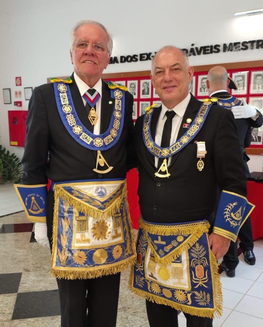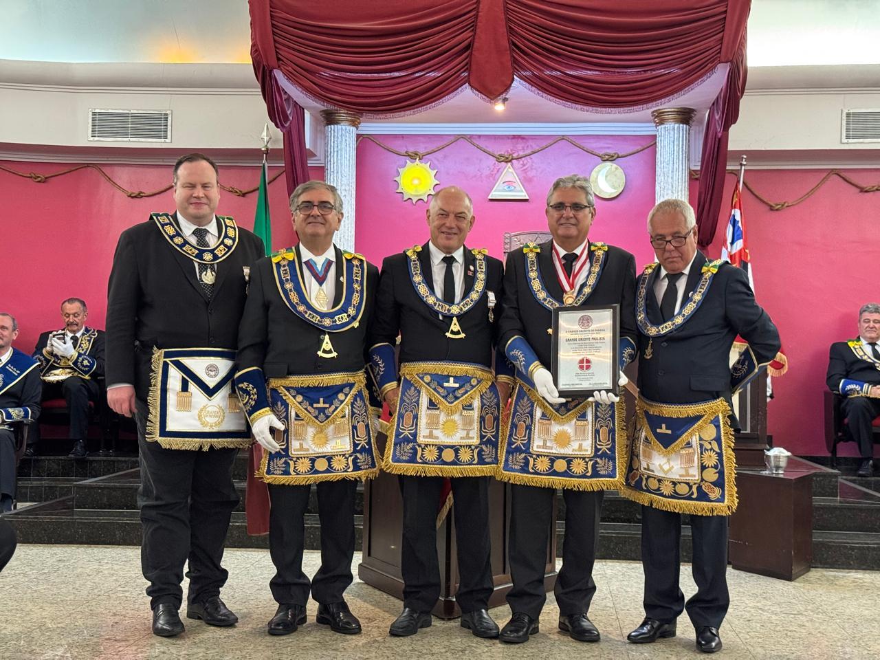 Na ocasião, nosso Sereníssimo Grão-Mestre realizou a entrega de placa comemorativa à nova gestão, na pessoa do Sereníssimo Grão-Mestre Celso Ribeiro, bem como ao Grão-Mestre Fernando Fernandes, que deixa o cargo após longa e relevante atuação, marcada por dedicação, compromisso institucional e expressiva contribuição ao fortalecimento da Ordem.